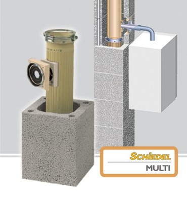 Koaksialni Dimnik Schiedel MULTI je keramični dimniški sistem, namenjen za etažno centralno ogrevanje z nizkotemperaturnimi ali kondenzacijskimi plinskimi grelniki. Ker kondenzacijski kotli tako zelo obremenjujejo dimnik, saj se temperature dimnih plinov povzpejo tudi do 30 stopinj.